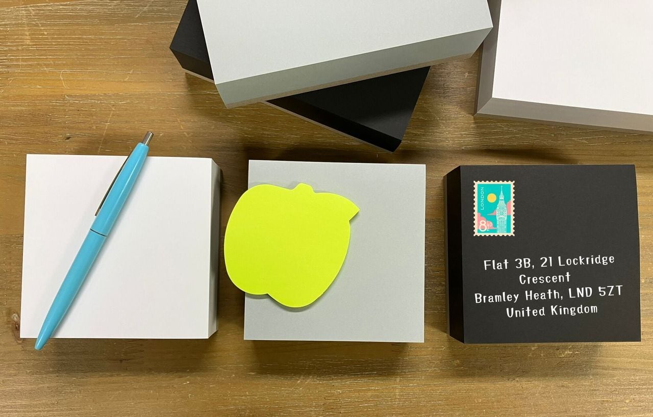 厚みのある台紙と本紙のコントラストが特徴的なメモブロック。