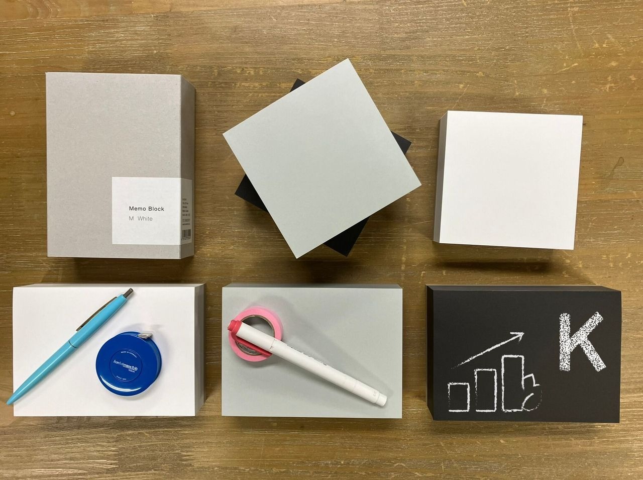 厚みのある台紙と本紙のコントラストが特徴的なメモブロック。