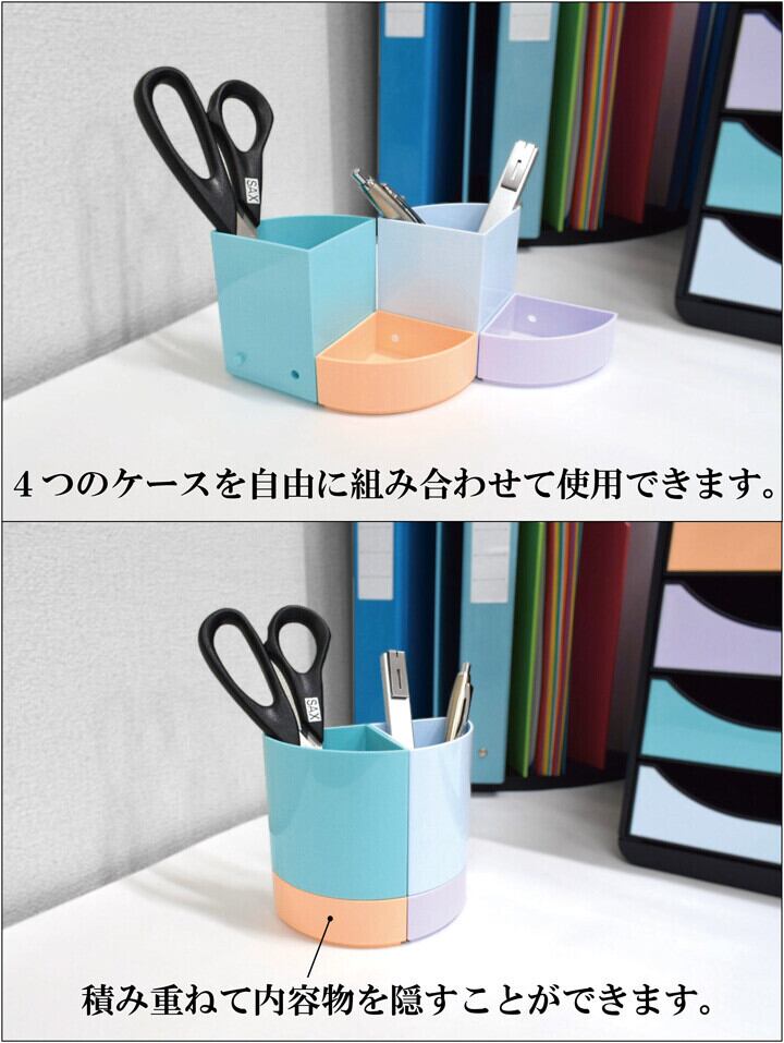 ●サイズ違いの入れ物4つを自由に組み合わせて、お好みの文房具収納コーナーを作ることが出来ます。