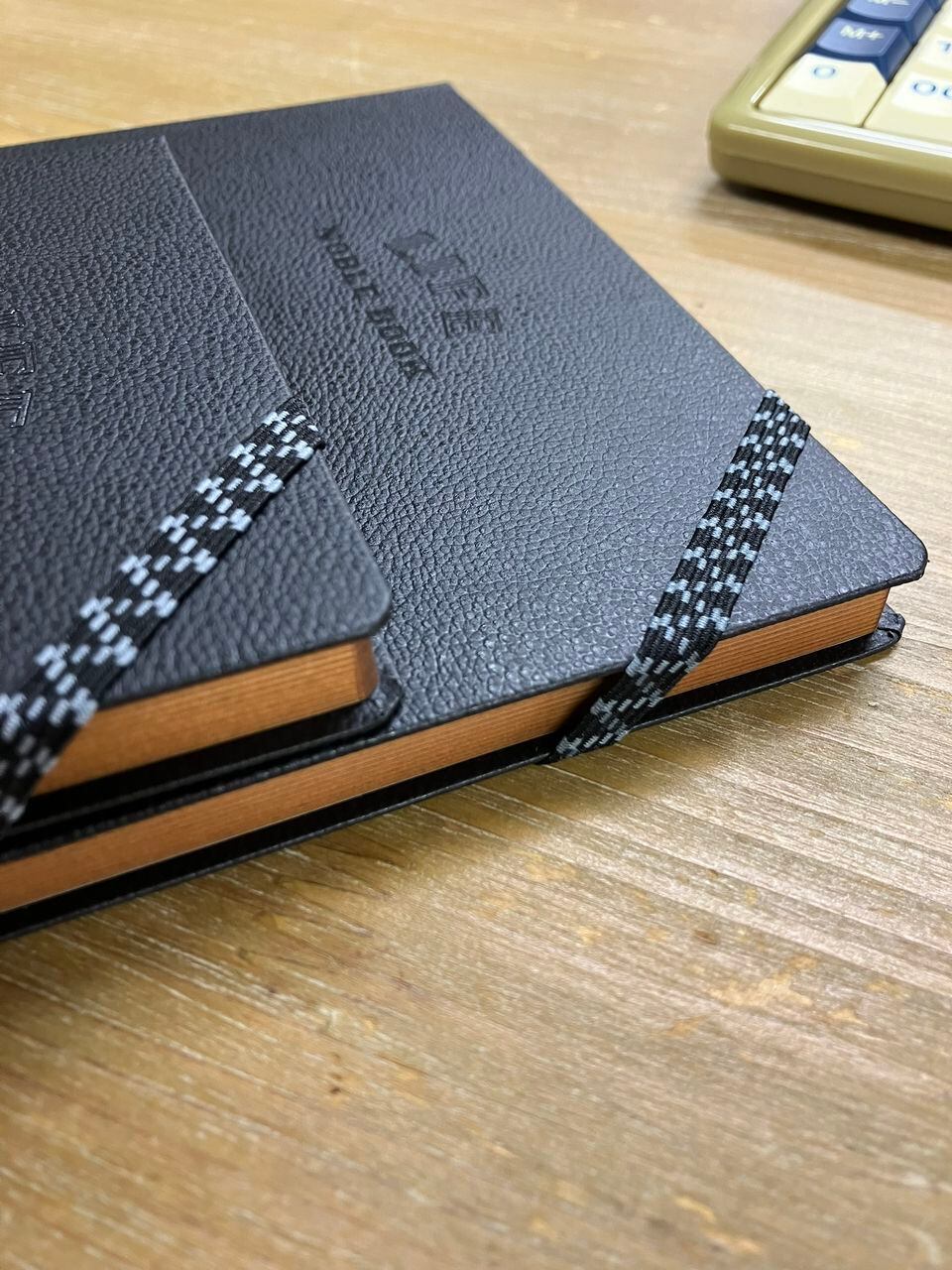 横罫、無地、方眼のシリーズ別カラーの小口染めに斜め綴じのゴムバンドが個性的な一冊で、ノート選びにこだわる方にふさわしい、書き心地と見た目の両方を満たした逸品です。