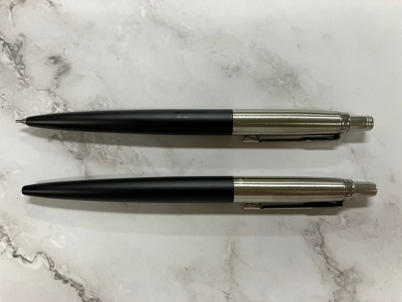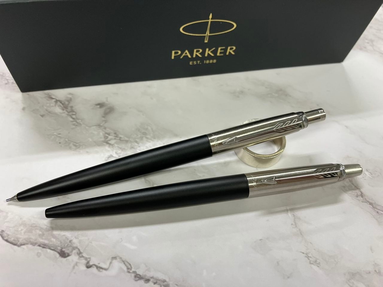 パーカーの初代ボールペンとして誕生し、65年以上にわたり世界中で愛され続ける「ジョッター」。開発には10年もの歳月が費やされ、革新的な技術によってボールペン市場に大きな影響を与えました。象徴的な「矢羽クリップ」と、手に馴染みやすい細身のフォルムは、シンプルでありながら洗練されたデザインとして高く評価されています。今回ご紹介するのは、ボールペンとシャープペンのセット。滑らかな書き心地と確かな品質は、ビジネスシーンから日常の筆記まで幅広く活躍します。高級感のある専用ボックス入りで、就職祝いや記念品などのギフトにも最適。入門編としてもおすすめできる一本で、普段使いにも贈り物にもふさわしいパーカーの定番です。