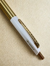 筆感:油性ですが独自技術で水性インクのような、なめらかな書き味です。細身で短めのボディはポケットや手帳との相性がよく、真鍮のグリップは適度な重さで持ちやすいです。インクはすぐ乾くので、筆圧強く書いてもにじみ、裏写りしにくいです。