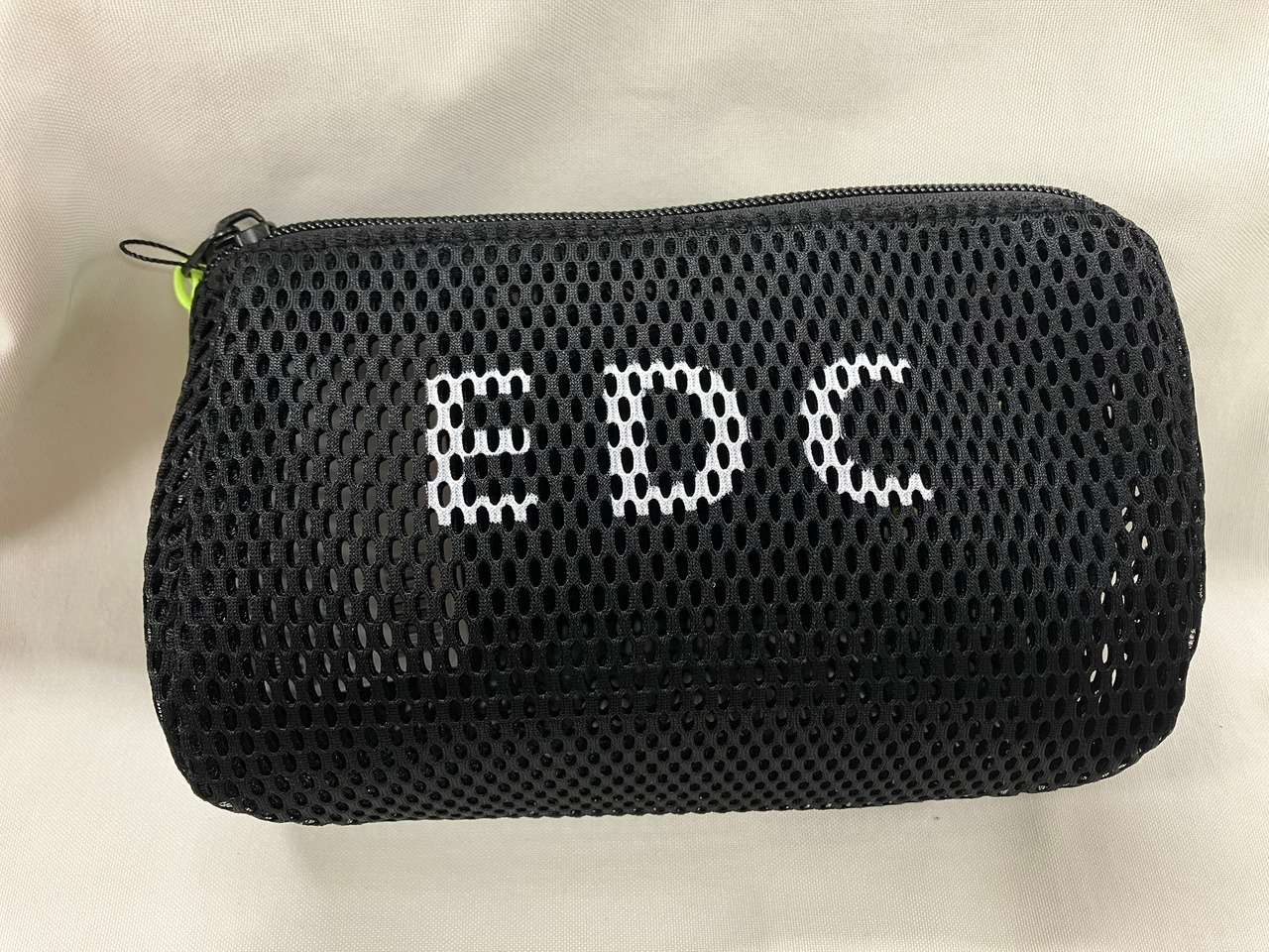 W200×H90×D60mmのサイズは、ペンケースとしてはもちろん、ガジェット類やコスメなどもまとめて収納できる大容量。内部はファスナーポケットが2つのシンプルな構造で、使い勝手に優れます。ブラック(BK)カラーにEDC(EveryDay Carry)のロゴが映えるデザインは、ビジネスシーンやスクールライフにおけるバッグインバッグとしても最適です。