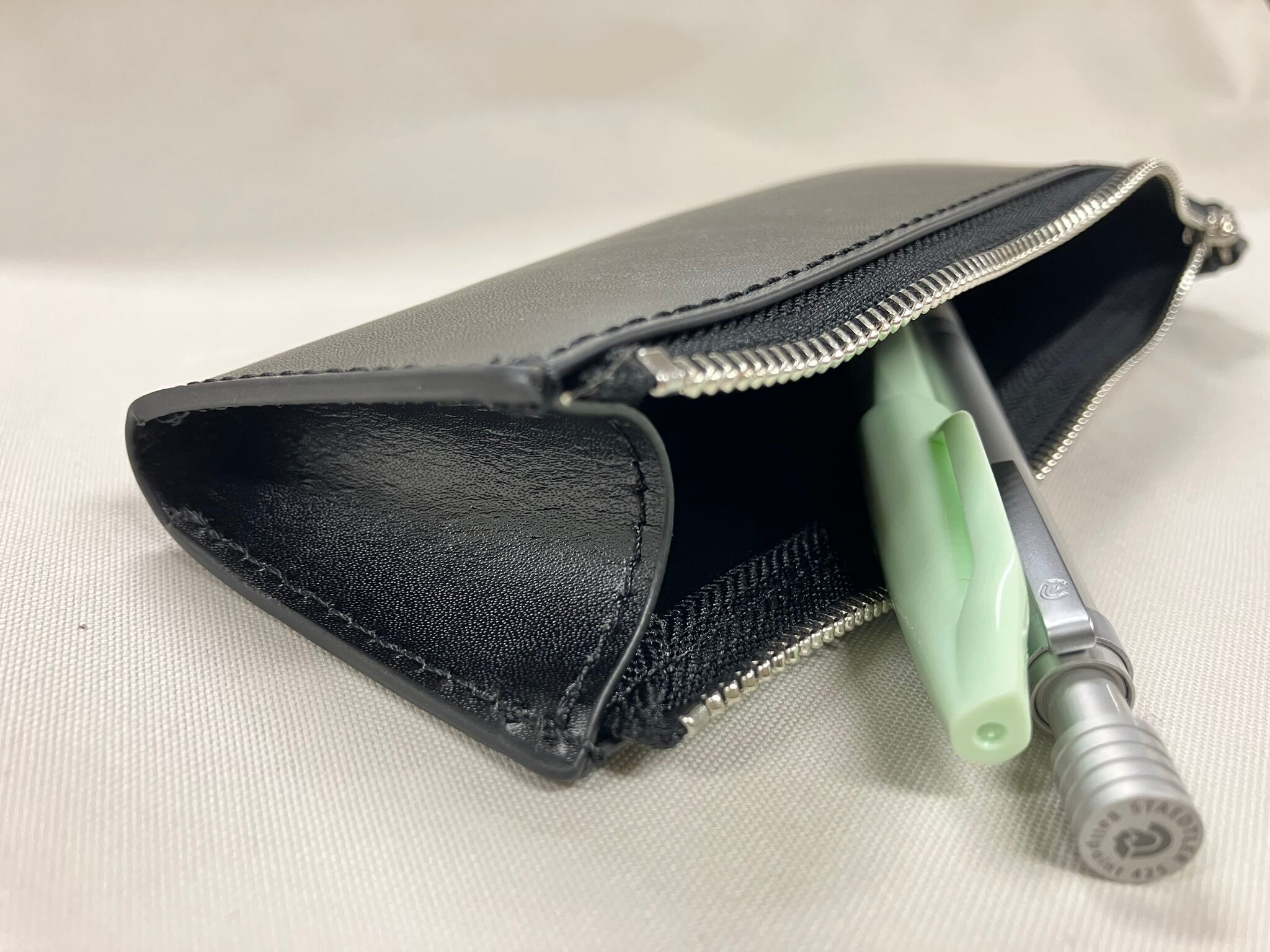 鞄のスペースを取らず、必要最低限の筆記具を上品に収納。片マチ構造により、中身の出し入れもスムーズで、効率化を重視するユーザーの「毎日使うものだから質にこだわりたい」という心理を満たします。SDGsを意識した、デスク周りを洗練させるデザイン文具です。